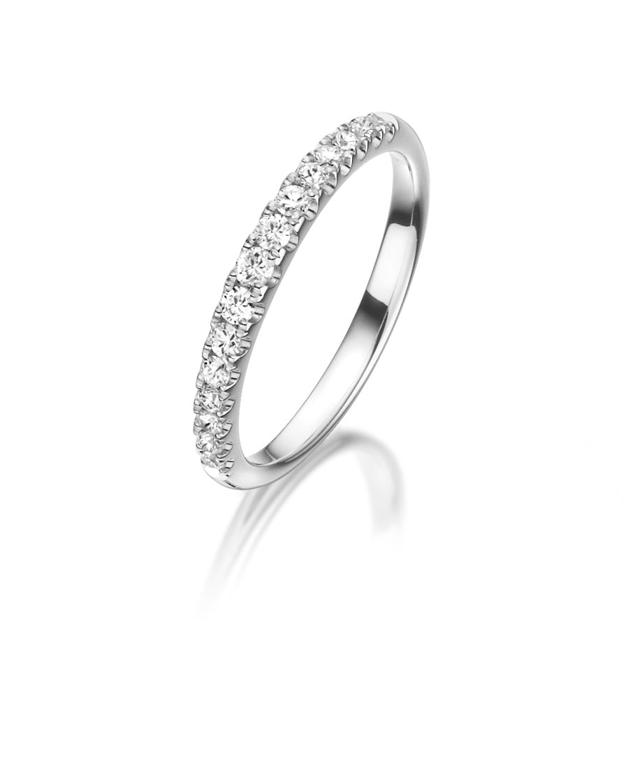 Memoire/Vorsteckring von Rubin in Weißgold 750/-. Steinbesatz mit zus. 0,28 ct. tw, vs - feines weiß mit sehr kleinen Einschlüssen.