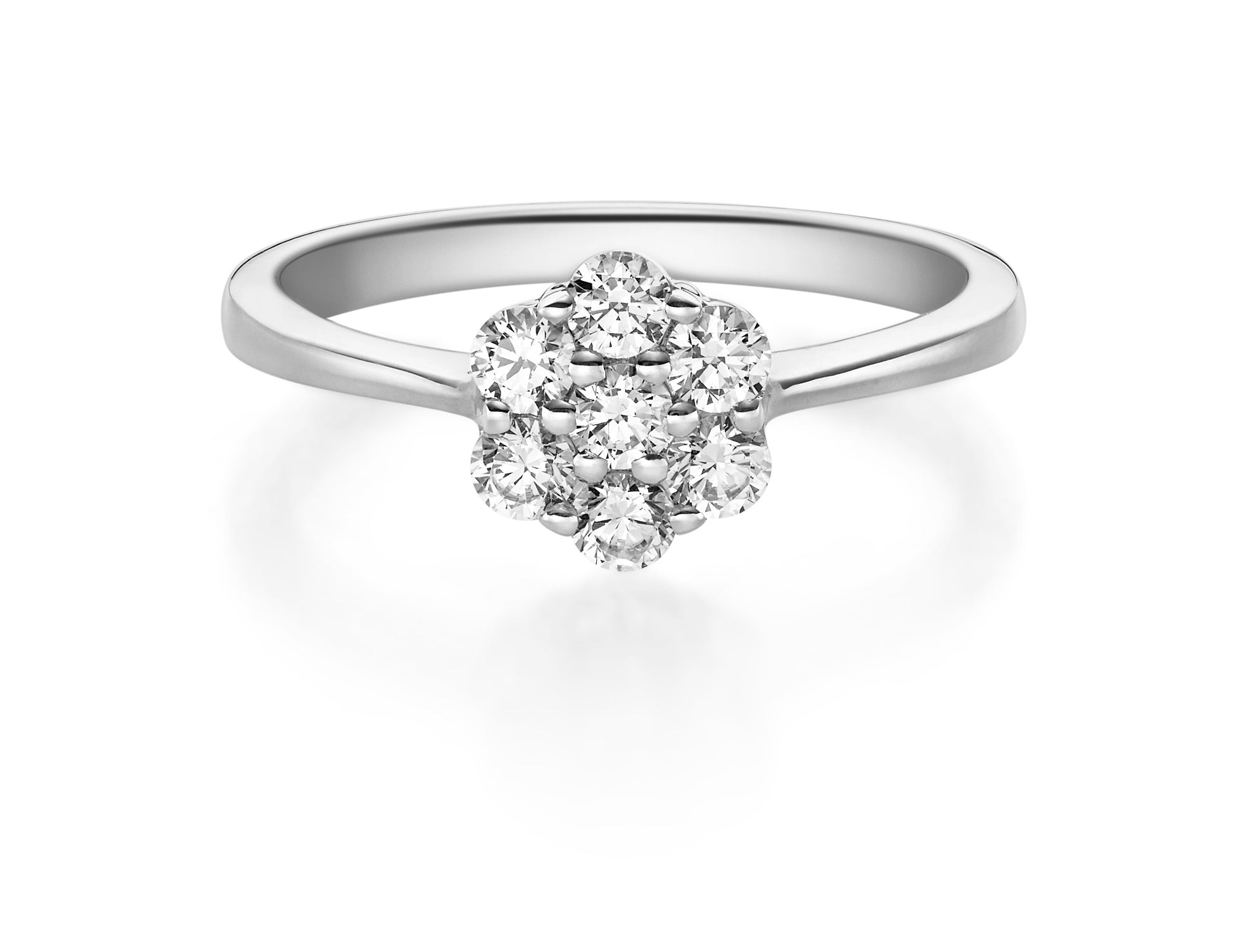 Verlobungsring von Rubin in Weißgold 750/-. Steinbesatz mit zus. 0,147 ct. tw, vs - feines weiß mit sehr kleinen Einschlüssen.
