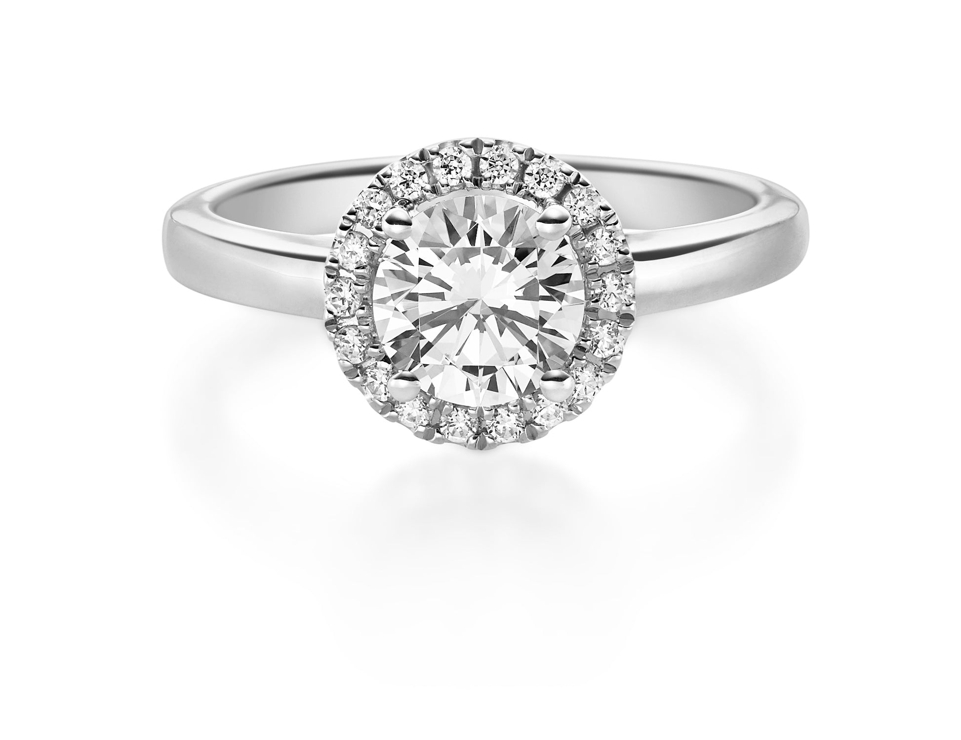 Verlobungsring von Rubin in Weißgold 585/-. Steinbesatz mit zus. 0,33 ct. tw, vs - feines weiß mit sehr kleinen Einschlüssen.