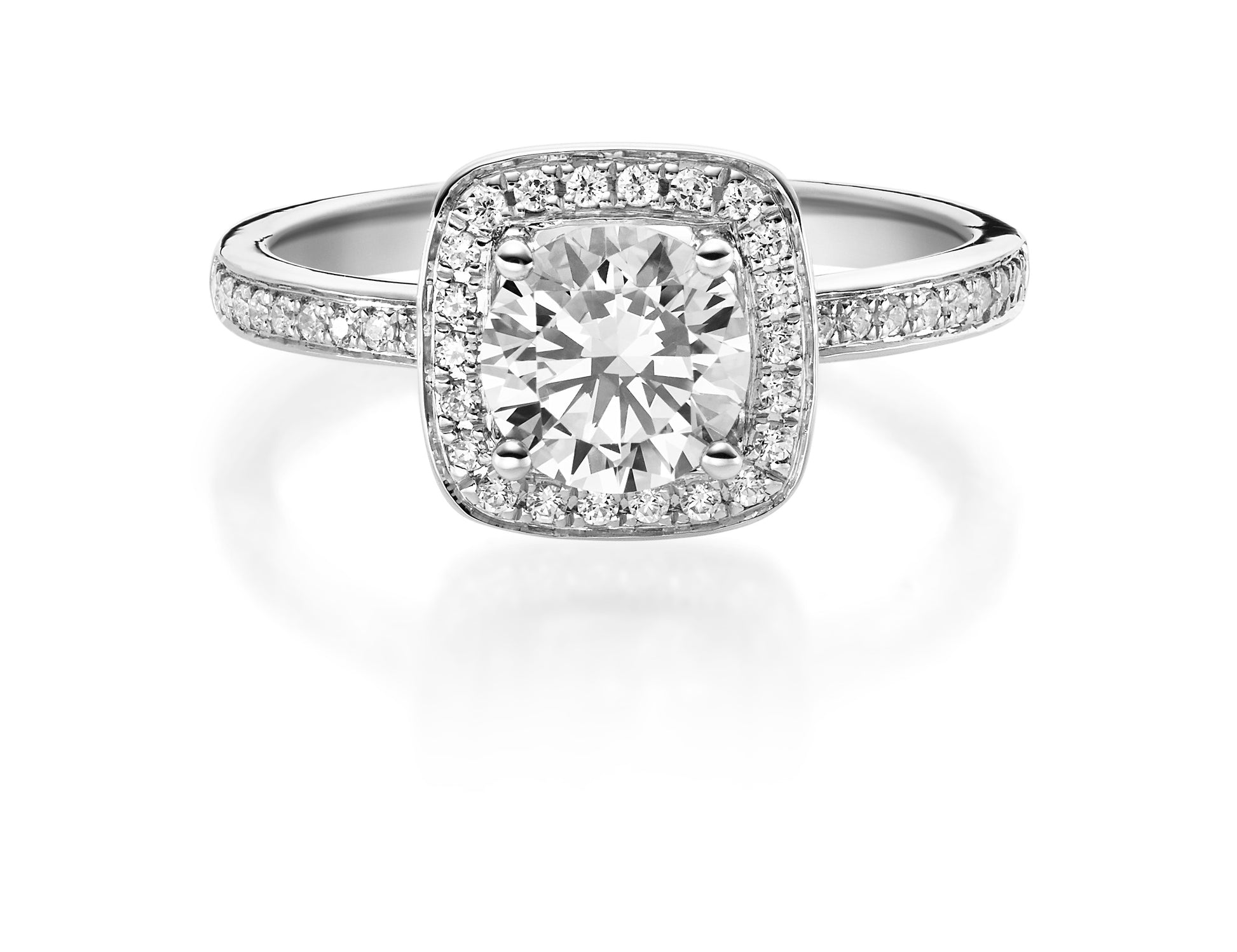 Verlobungsring von Rubin in Weißgold 750/-. Steinbesatz mit zus. 0,539 ct. tw, si & tw, vs - feines weiß mit kleinen Einschlüssen & feines weiß mit sehr kleinen Einschlüssen.